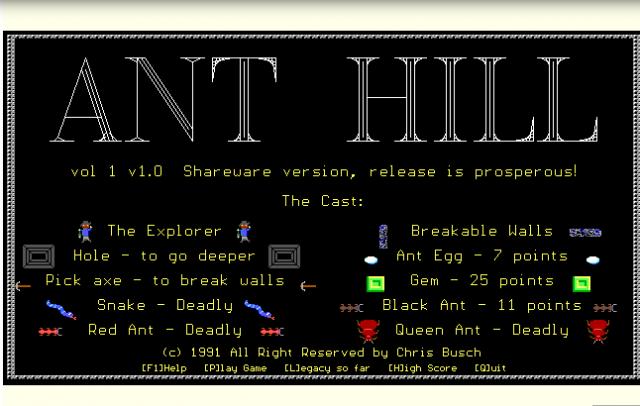 Ant Hill for DOS Shareware