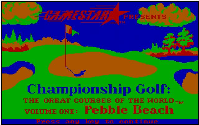 Championship Golf: The Great Courses of the World - Volume I: Pebble Beach is a golf game which features the American course Pebble Beach. For every hit the game shows a 3D and overhead view of the situation, so the player can plan the next steps accordingly. The golf game itself is menu driven: the player changes various parameters, e.g. the golf club, the direction, the golfer's position, the strength and if the ball is hit in the middle or an outer edge. According to those parameters the game calculates the hit, which even may result in a straight miss, and then the next planning phase starts. The player may play a championship with all 18 holes or a training round with a single hole.