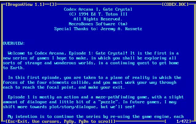 Codex Arcana I, Gate Crystal for DOS