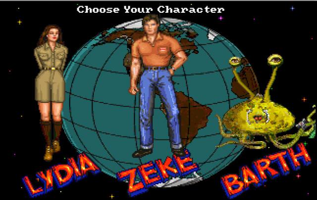 Almost twenty years passed since the inhabitants of Earth defeated the Leather Goddesses of Phobos. The year now is 1958, and the scientific world is excited at the news of the discovery of a new planet in the Solar System, a so-called "Planet X". One night, a spaceship crash-lands in the small town of Atom City, Nevada, home to a military base and a nuclear power plant. The alien Barth, a self-described "Pulsating Inconvenience" from Planet X, brings terrible news to the people of Earth: the Goddesses have conquered Planet X and forced its denizens to become sex slaves. Gas Pump Girls is the sequel to Leather Goddesses of Phobos. The player can choose between three different protagonists: the alien Barth, the gas station owner Zeke, or Lydia, the daughter of the astronomer who discovered Planet X. Barth's scenario involves different tasks, while the humans' gameplay is largely identical, with the exception of different dialogues. Unlike the previous game, the sequel is a graphical adventure without any text input. The player interacts with the environment in a point-and-click fashion, with a "smart cursor" that automatically changes its shape depending on the possible action that can be executed with a person or an object. The game has multiple-choice conversations, many of which are optional.