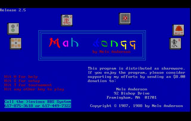 Mah Jongg for DOS by Nels Anderson