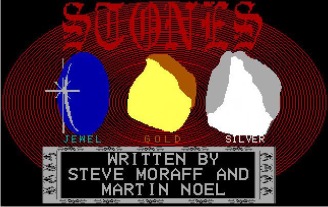 In Moraff's Stones you play a human who comes into one of the many taverns in Moraff's World and you are invited to join in a game of... Stones. Stones is a game where you trade precious/semiprecious stones around the table, trying to get the most valuable hand, or the most complete and valuable hand (you get a 100 silver piece bonus for the most complete and valuable hand). You continue playing until you are wiped out by cleverer opponents and don't have enough silver pieces to buy yourself back into the game.