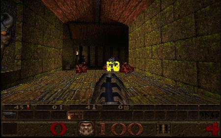 Play this now! Quake, published in 1996, is a first-person shooter, the objective of the game is to find a way through various maze-like, medieval surroundings while battling monsters using an array of weaponry.
